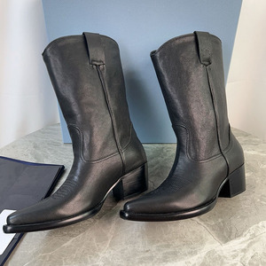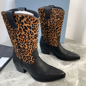 东莞厚街~25年新款西部牛仔靴小方头舒适中筒靴粗跟短靴豹纹女靴