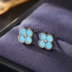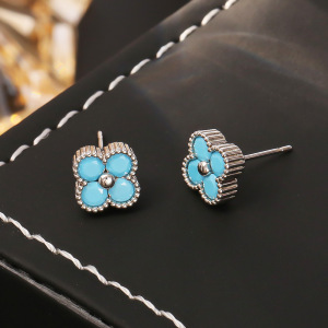 银色-四叶草蓝色松石耳钉(S925纯银针)
