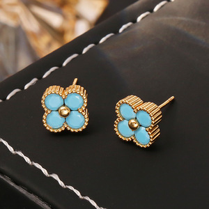 金色-四叶草蓝色松石耳钉(S925纯银针)