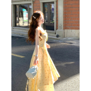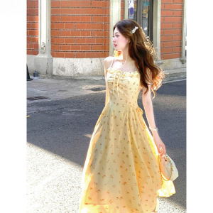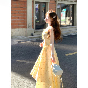 雪梨气泡水/甜美气质挂甜美千金修身碎花吊带长裙+温柔开衫两件套