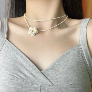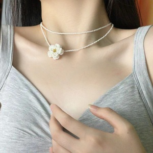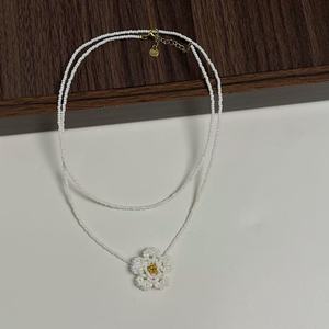 海边度假风米珠串珠花朵双层项链时尚优雅甜美小香风高级锁骨链女