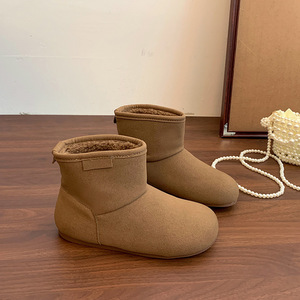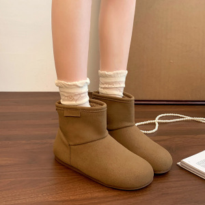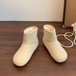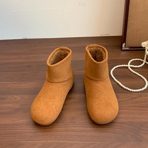 森系厚底皮毛一体雪地靴加绒加厚小土豆雪靴冬季复古真皮博肯短靴