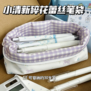 蕾丝蝴蝶结花边笔袋ins高颜值大容量文具袋学生铅笔袋便携收纳包