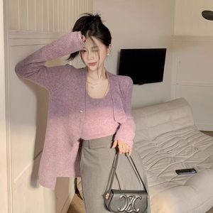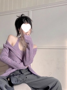 温柔风2025年春季新款百搭气质时尚修身显瘦针织开衫挂脖吊带套装