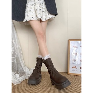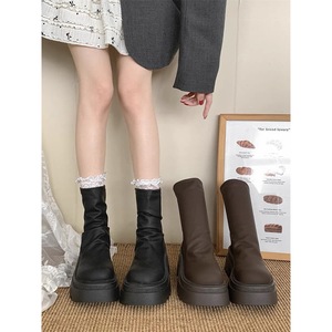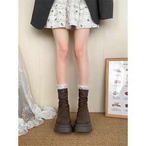 洋气厚底瘦瘦短靴子女2025新款美拉德百搭小个子增高马丁靴
