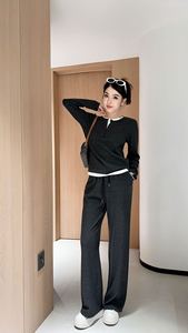 2025人棉休闲时尚套装显瘦宽松修身垂感长裤时尚穿搭假两件两件套