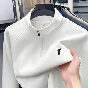 300G保罗秋季立领加厚男士卫衣2025新款半拉链休闲宽松长袖t恤男