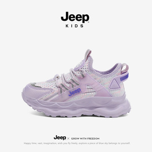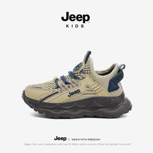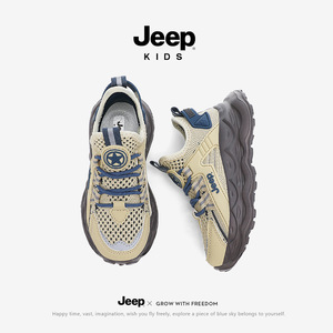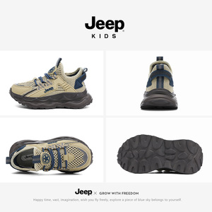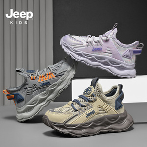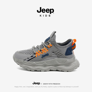 Jeep吉普秋季透气网面男童飞织鞋软底软面透气跑步鞋中大童运动鞋