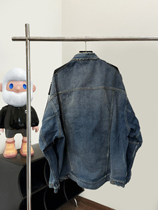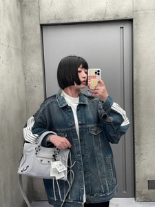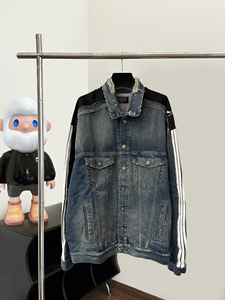 巴黎正确版B家SPORTS半环刺绣多条杠B潮牌高版本男女牛仔夹克外套