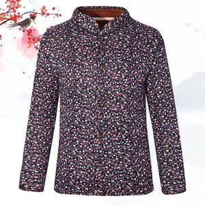 中老年女士驼绒花棉袄妈妈外套加绒加厚小棉袄驼绒棉长袖外套冬装
