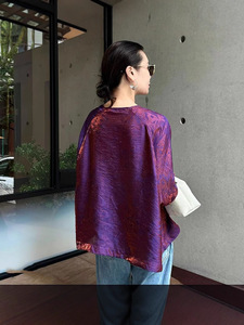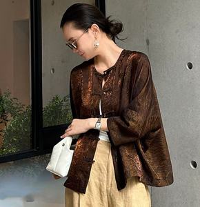 双色复古洋气重磅香云纱浮光锦提花新中式琉璃金盘扣秋季上衣