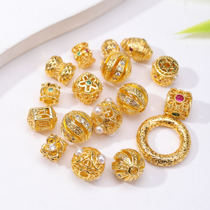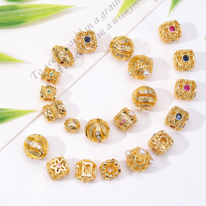 高保色铜镀金镶锆石珍珠跑环隔珠配件隔片精美吊坠diy饰品配件批