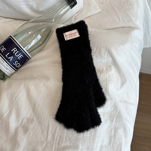 韩系ins风纯色简约毛绒手套女秋冬季防寒保暖加长款漏指触屏个性