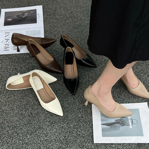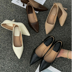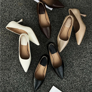 5.5cm秋季细跟尖头超软百搭高跟鞋浅口单鞋女士职业工作鞋通勤百