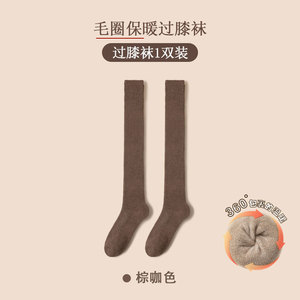 加厚--过膝袜--棕咖色