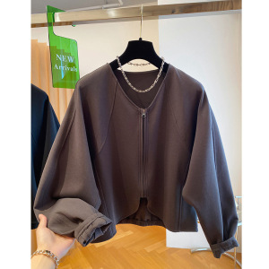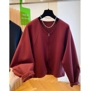 春秋新款安可拉红开衫外套上衣女装设计感V领太空棉百搭潮流爆款