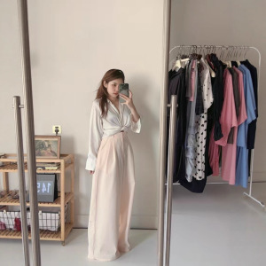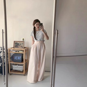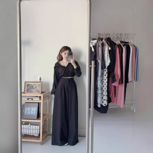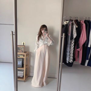 al0秋季垂感阔腿裤宽松拖地黑色直筒西装长裤松紧腰欧美风女生款