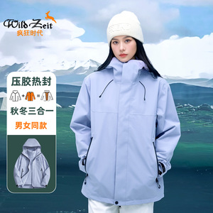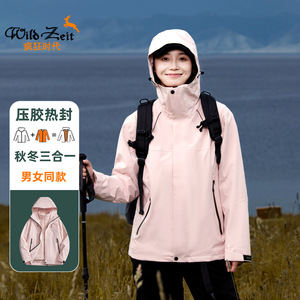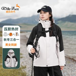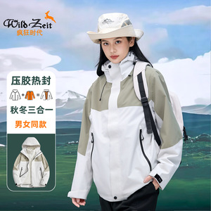 定制压胶冲锋衣男女三合一登山服加绒防风防水夹克保暖冬季工作服