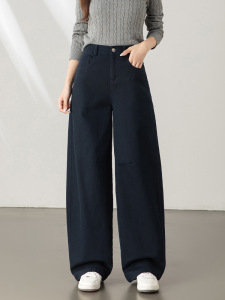 荷然纯棉阔腿弯刀裤女秋季新款宽松高腰显瘦休闲时尚百搭香蕉长裤