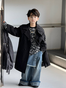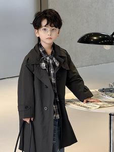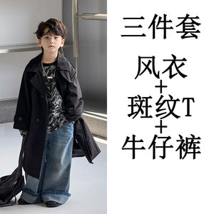 男童风衣套装2025秋季新款儿童宽松时尚复古中长款外套一件代发潮