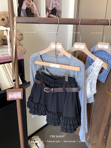 2025新款韩系甜美木耳边拼接显瘦半身裙女早秋季防走光a字短裙子