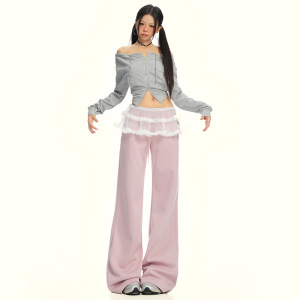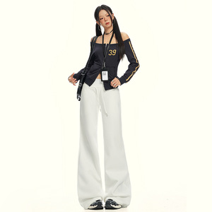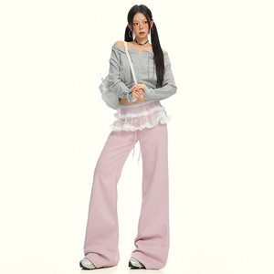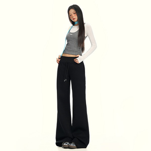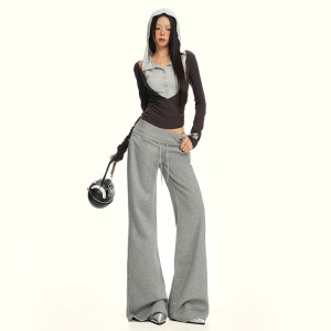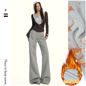 【今茵】4色/松紧腰抽绳设计宽松直筒阔腿拖地休闲卫裤/单裤+加绒