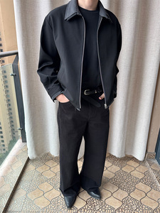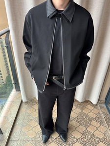 条纹拼接假两件夹克2025年春秋季新款毛边Cleanfit高知极简外套男