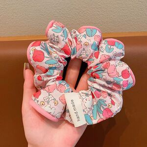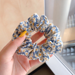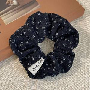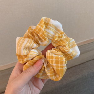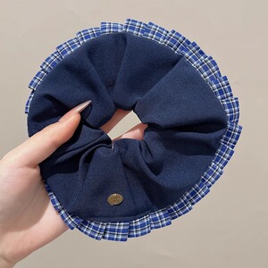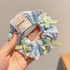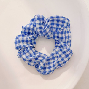 1#蓝格纹拼接小猫大肠发圈-12cm