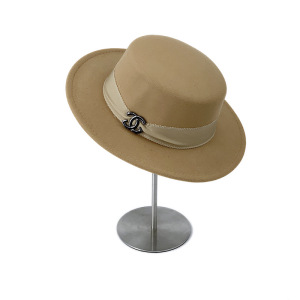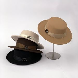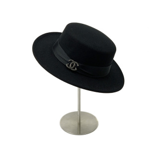 秋冬平顶毛呢帽子女时尚百搭复古黑色礼帽英伦欧美风宽檐爵士帽男