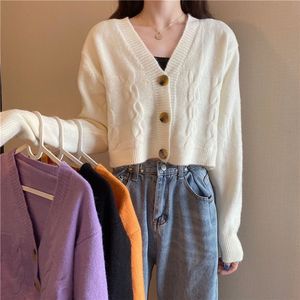 短款紫色麻花毛衣开衫外套女针织宽松外穿慵懒风长袖上衣春季百搭