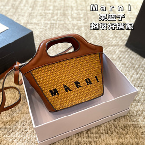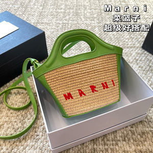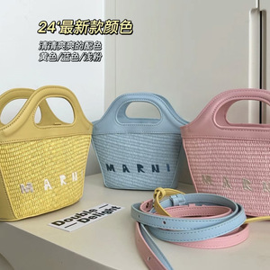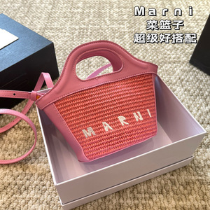 Marni玛尼迷你菜篮子草编包夏季小包包拉菲草手拎单肩斜挎女包潮