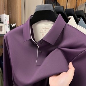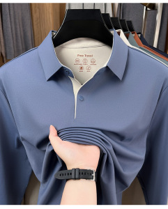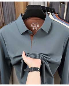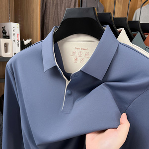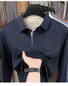 跨境新款锦氨无痕7A抗菌长袖t恤秋季时尚百搭纯色翻领男士polo衫