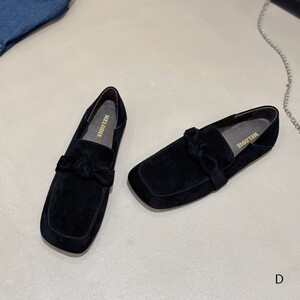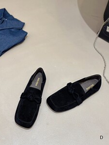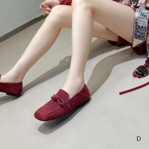 欧洲站女鞋25秋冬时尚蝴蝶结超柔软羊猄皮小方头平底款乐福鞋单鞋