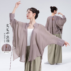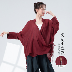 中国禅意风新中式宽松大舞蹈服女交叉小立领露背上衣古典舞练功服