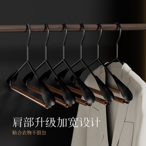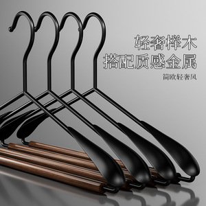 原木铁艺衣架质感宽肩衣挂服装店家用裤架多功能轻奢铁木衣架