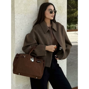 2025秋季时尚三色纯色阔型拉链毛呢外套跨境亚马逊女装B88780