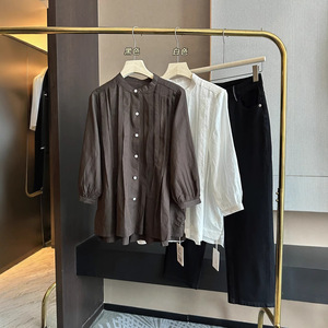 女款设计款高级美感重工压褶七分袖衬衫 061g607