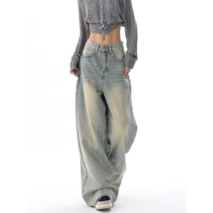 3610# KEN STUDIO秋新款复古直筒牛仔裤宽松设计拖地薄款阔腿裤子