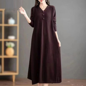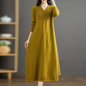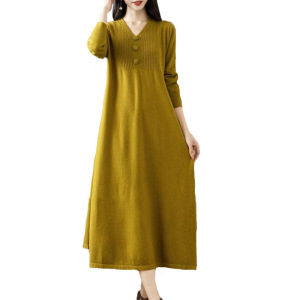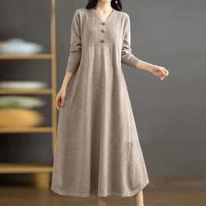 秋冬新款针织女羊毛连衣裙时尚宽松大码中长款中年妈妈羊绒毛衣裙