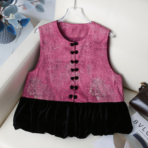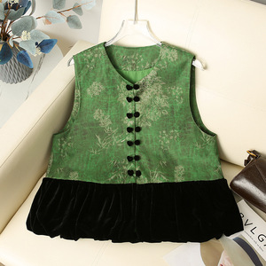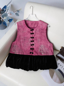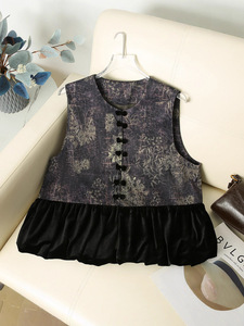 批发新中式复古拼接马甲无袖背心圆领上衣国风减龄马甲高级感马夹