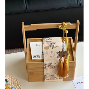 小竹木提篮空盒+仲秋封条+金钱结流苏+兔耳流苏 约19.5*15*11.5cm
