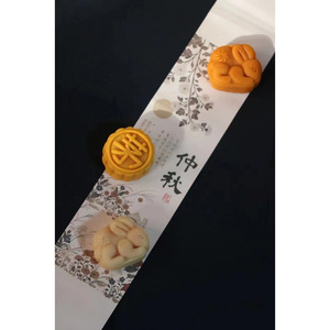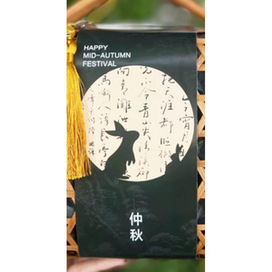 镂空手提空蓝+月兔仲秋封条+黑色雪梨纸+黄色扇形流苏 约27*14*9cm