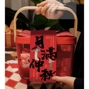红色手提空蓝+月满仲秋封条 约21.5*21.5*16.5cm