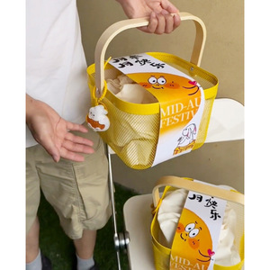 黄色(大号)ins风手提空篮+越来越快乐封条+抽绳袋+兔子挂件一个约24.5*24.5*18cm