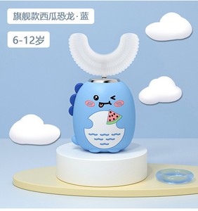 儿童U型电动牙刷卡通小恐龙三档调节智能声波充电式婴儿软毛刷