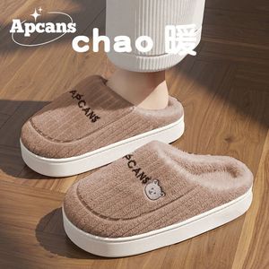 Apcans拖鞋男士秋冬季2025新款室内家居防滑保暖毛毛情侣棉拖鞋女