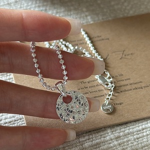 925纯银小众设计感复古时尚闪光CNC圆片项链韩国风时髦锁骨链批发