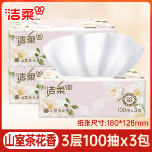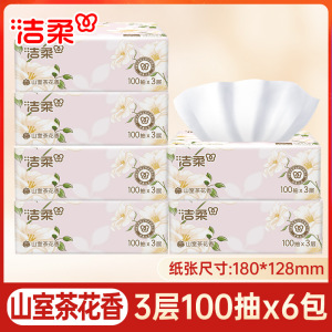 洁柔山室茶花香抽纸卫生纸家用实惠装整箱100抽24包餐巾纸面巾纸