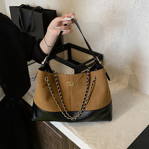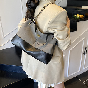 跨境新款小香风菱格包包女链条复古拼色包单肩包休闲托特包通勤包