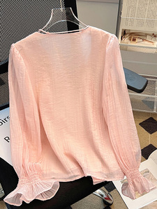荷叶边长袖衬衫女2025年春秋新款设计感立体花朵上衣小衫女A6445